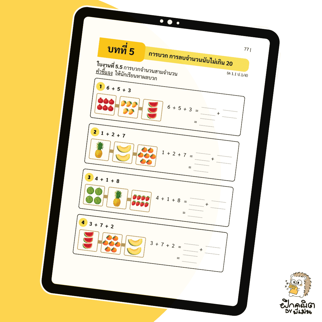 🎨 ออกแบบตามหลักจิตวิทยาเด็ก: ใบงานมี สีสันสดใส และ ภาพประกอบน่ารัก เพื่อกระตุ้นความสนใจและทำให้เด็ก ๆ รู้สึกสนุกไปกับการทำโจทย์
