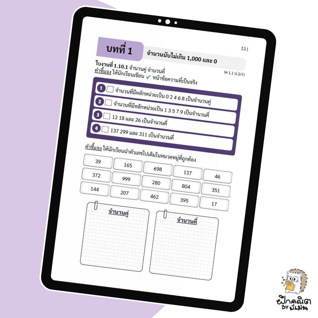• ไฟล์พร้อมใช้ทันที: เป็นไฟล์ PDF คุณภาพสูง เพียงดาวน์โหลด ก็พร้อมสั่งพิมพ์ออกมาให้ลูกคุณเริ่มต้นฝึกคณิตศาสตร์ได้ทันที!